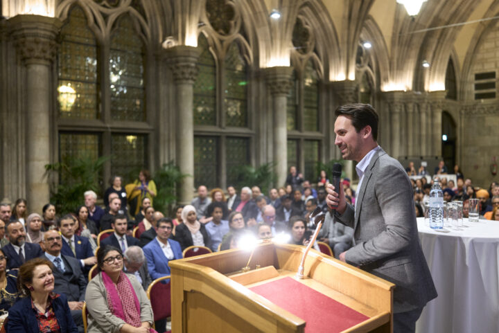 Belediye Başkan Yardımcısı ve Entegrasyondan Sorumlu Belediye Meclis Üyesi Christoph Wiederkehr’in de katıldığı, çeşitli toplulukların Belediye Binası’ndaki bu üçüncü toplantısına yaklaşık 230 kişi katıldı. Dün gece düzenlenen 2024 Toplum Forumu, Viyana’daki çok dilli gerçeklik hakkında bir diyalog platformu oluşturdu.