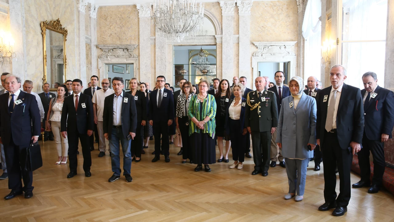 VİYANA. Viyana Büyükelçiliği’nde öğlenden önce düzenlenen törene T.C. Viyana Büyükelçisi Gürsel Dönmez, şehit Erdoğan Özen’in eşi Monika Özen ve torunu, Birinci Sınıf Başkonsolos Ece Öztürk, T.C. Viyana Büyükelçiliği Din Hizmetleri Müşaviri Selahattin Çelebi, Viyana Büyükelçilik çalışanları, birçok Türk sivil örgüt temsilcisi ve basın mensubu katıldı.