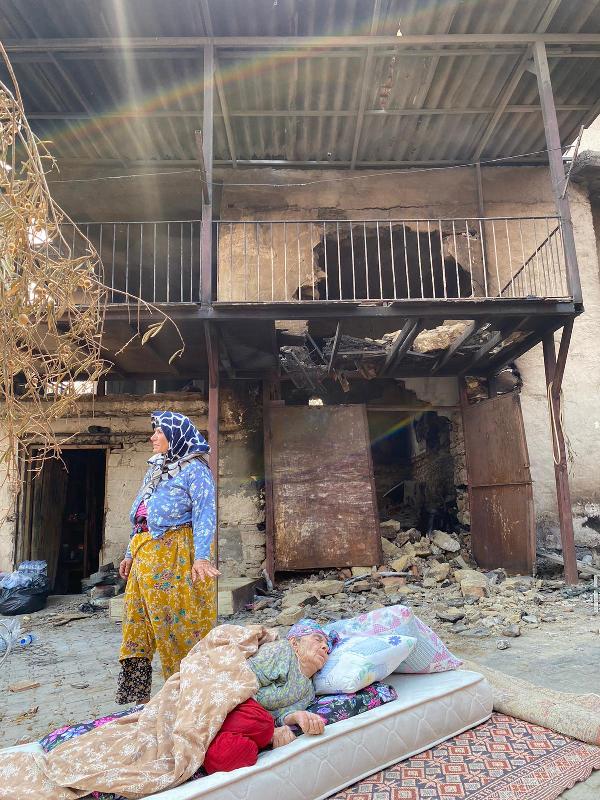 Evlerinde uzun zaman elektrik olmadığını söyleyen Yılmaz, „İlaçlarımı koymak için adeta buz dileniyorum. Günde 4 kez bu ilaçları kullanıyorum. 8 kilometre uzakta bir market var. Şu anda ilaçlarım orada dolapta duruyor. Her gün çocuklarımızla günde birkaç kez gidip getiriyoruz. Buz bulabilirsek akşama kadar onun içerisinde durabiliyor. Birer kalem getirdik, buzla idare etmeye çalışıyoruz. Perişanız, rezalet durumdayız. Yıkıntıların içindeyiz. Bütün emeklerimiz gitti“ diye konuştu.