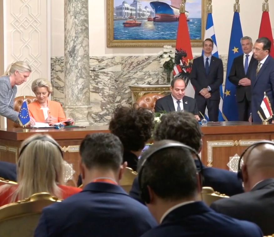 AB Komisyonu Başkanı Ursula von der Leyen, Federal Şansölye Karl Nehammer (ÖVP), İtalya Başbakanı Giorgia Meloni, Yunanistan hükümet başkanı Kyriakos Mitsotakis ve Belçika hükümet başkanı Alexander de Croo ile Kıbrıs Cumhurbaşkanı Nikos Christodoulidis, AB ile Mısır arasında işbirliği mutabakatı imzalamak üzere Mısır Cumhurbaşkanı Abdel Fattah Al-Sisi ile Kahire’de bir araya geldi. Bir süredir müzakereleri devam eden AB ve Mısır sonunda bir anlaşmaya vardı. 17 Mart Pazar günü imzalanan belge bir göç anlaşması olarak lanse ediliyor, ancak bundan daha fazlası söz konusu; milyarlık anlaşmada sınırların korunması, mültecilerin bakımı ve benzeri konular için yalnızca 200 milyon avro ayrıldığı bildirildi.
