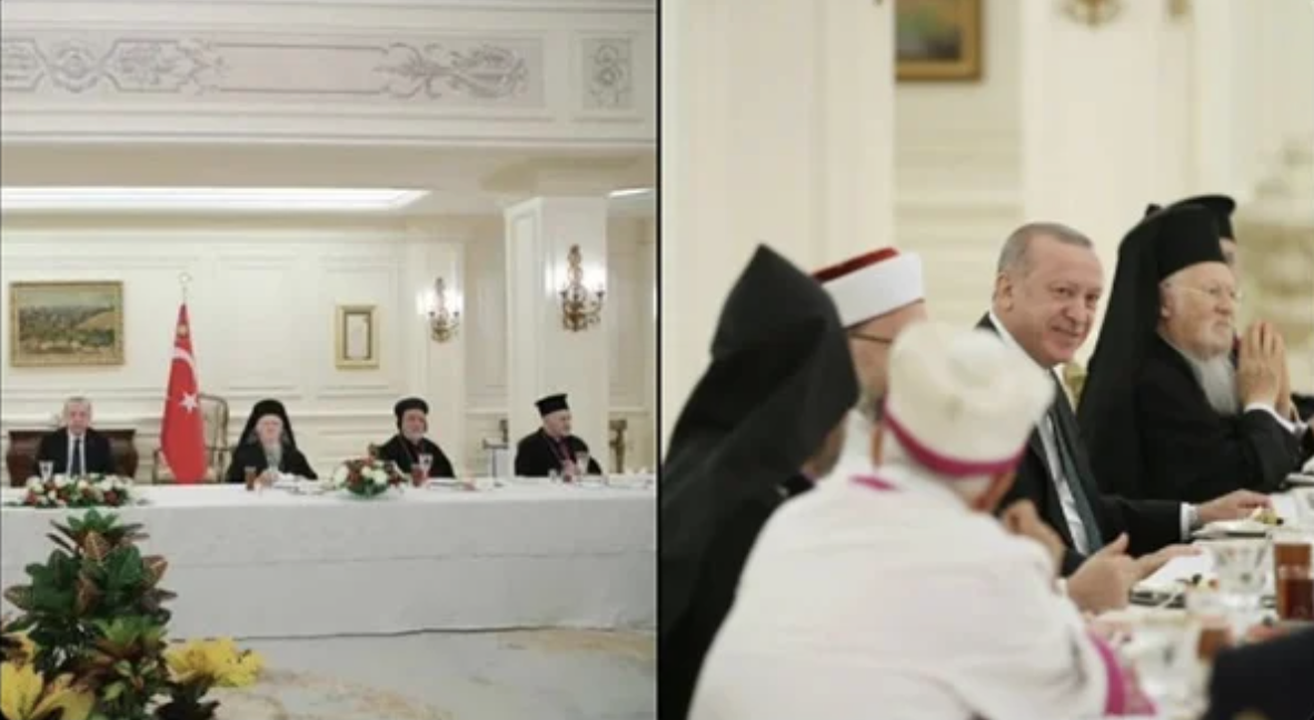Cumhurbaşkanı Erdoğan’ın Türkiye Musevileri Hahambaşı İsak Haleva ve Türk Musevi Cemaati Başkanı İshak İbrahimzadeh’in de aralarında bulunduğu azınlık cemaati temsilcileriyle bir araya geldiği toplantıdan fotoğraflara da yer verildi.