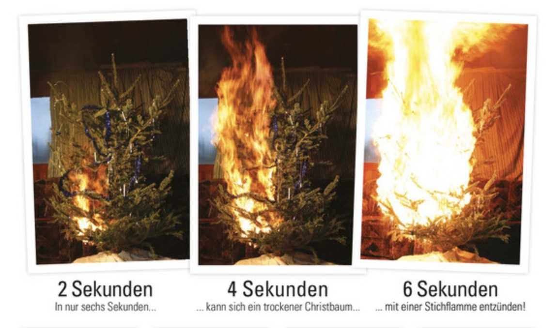 Brennt der Christbaum erst einmal, kann sich das Feuer rasch auf weitere brennbare Einrichtungsgegenstände wie Möbel, Vorhänge und Tischtücher ausbreiten – und schon steht das ganze Zimmer in Flammen.