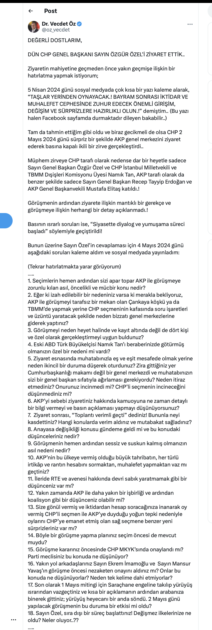 Sayın CHP Genel Başkanı Özgür Özel’den randevu istedik, gecikmeli olsa da randevu verildi ve görüşmeyi dün gerçekleştirdik.