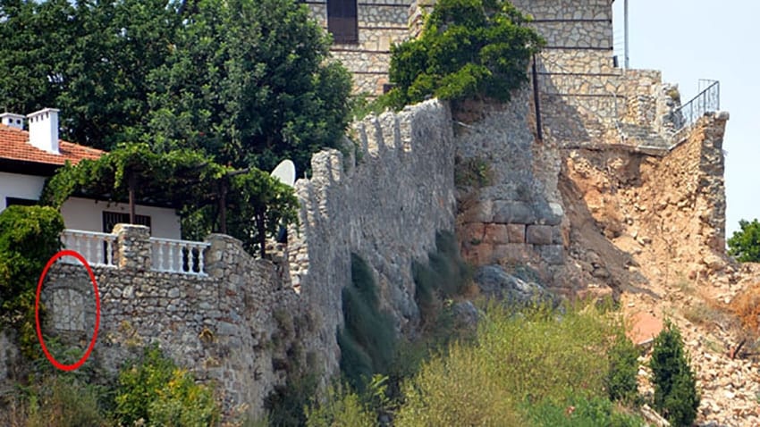 Tarihi kalenin Ehdemek bölgesindeki kısmında, Avusturyalı Walter Godina’ya ait evin duvarlarıyla bitişik ve Alanya Müze Müdürlüğü sorumluluğundaki tarihi surların nisan ayında yıkıldığı ortaya çıktı.