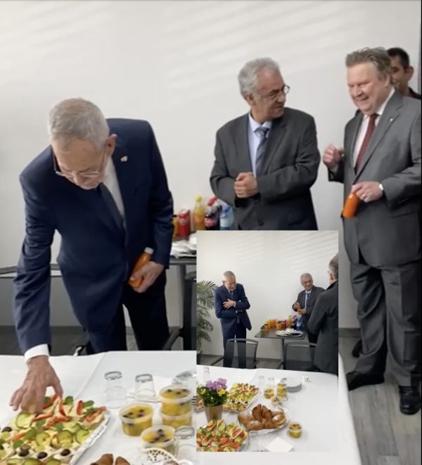 Ali Çelik’in misafirleri için hazırladığı güzel Aperitif yeme ve içmeleri gören Cumhurbaşkanı Van der Bellen’in, zahmetler için -zamanın darlığına rağmen- iki elini göğsüne götürüp eğilerek teşekkür etmesi ne kadar alçak gönüllü bir insan olduğunu bir daha gösterirken, ikramlardan hoşuna giden özel hazırlanmış kaşarlı leziz bir ekmeği alıp yemesi de takdir gördü. Türk gelenek ve göreneklerinde, misafirlerin kendileri için hazırlanan sofradan başta çay, kahve olmak üzere ikram edilenden en azından tatması bir dostluk ve memnun kaldığının göstergesi olarak kabul edilirken, en çok da ev sahibine saygının göstergesi olarak kabul ediliyor.