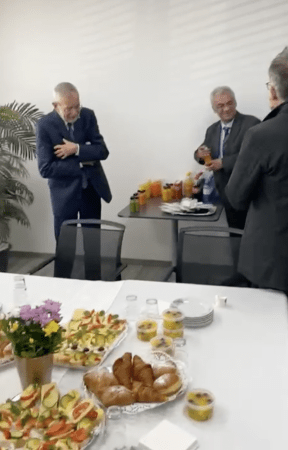 Ali Çelik’in misafirleri için hazırladığı güzel Aperatif yeme ve içmeleri gören Cumhurbaşkanı Van der Bellen’in, zahmetler için -zamanın darlığına rağmen- iki elini göğsüne götürüp eğilerek teşekkür etmesi ne kadar alçak gönüllü bir insan olduğunu bir daha gösterirken, ikramlardan hoşuna giden özel hazırlanmış kaşarlı leziz bir ekmeği alıp yemesi de takdir gördü. Türk gelenek ve göreneklerinde, misafirlerin kendileri için hazırlanan sofradan başta çay, kahve olmak üzere ikram edilenden en azından tatması bir dostluk ve memnun kaldığının göstergesi olarak kabul edilirken, en çok da ev sahibine saygının göstergesi olarak kabul ediliyor.