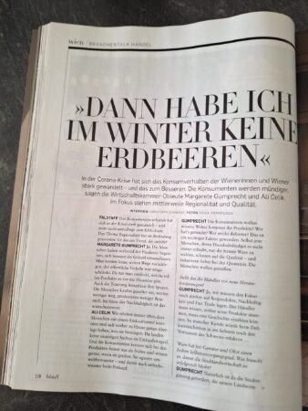 Für den SWV gaben Ali Çelik, der bei der Wahl zum Präsidenten der Wirtschaftskammer Wien stellvertretend für alle Gewerbetreibenden der Lebensmittel- und Landwirtschaftsbranche die meisten Stimmen erhielt, und Margarete Gumprecht vom Wirtschaftsbund den Lesern ein informatives vierseitiges Interview. In der gleichen Ausgabe wurden auch die Interviews mit dem Wiener Bürgermeister Michael Ludwig (SPÖ) und dem Präsidenten der Wirtschaftskammer Wien, Walter Ruck (ÖVP), abgedruckt.
