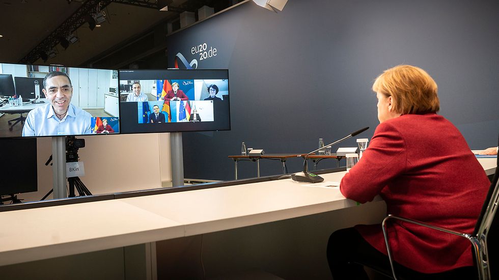 BERLİN. Başbakan Angela Merkel konuşmasına Prof. Uğur Şahin’in salgını erken fark ederek virüse karşı aşı geliştirmesinin insanlık için önemine vurgu yaparak başladı.