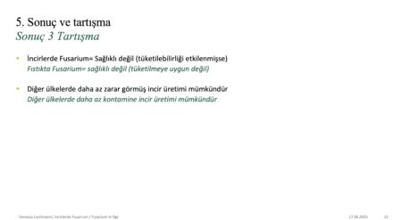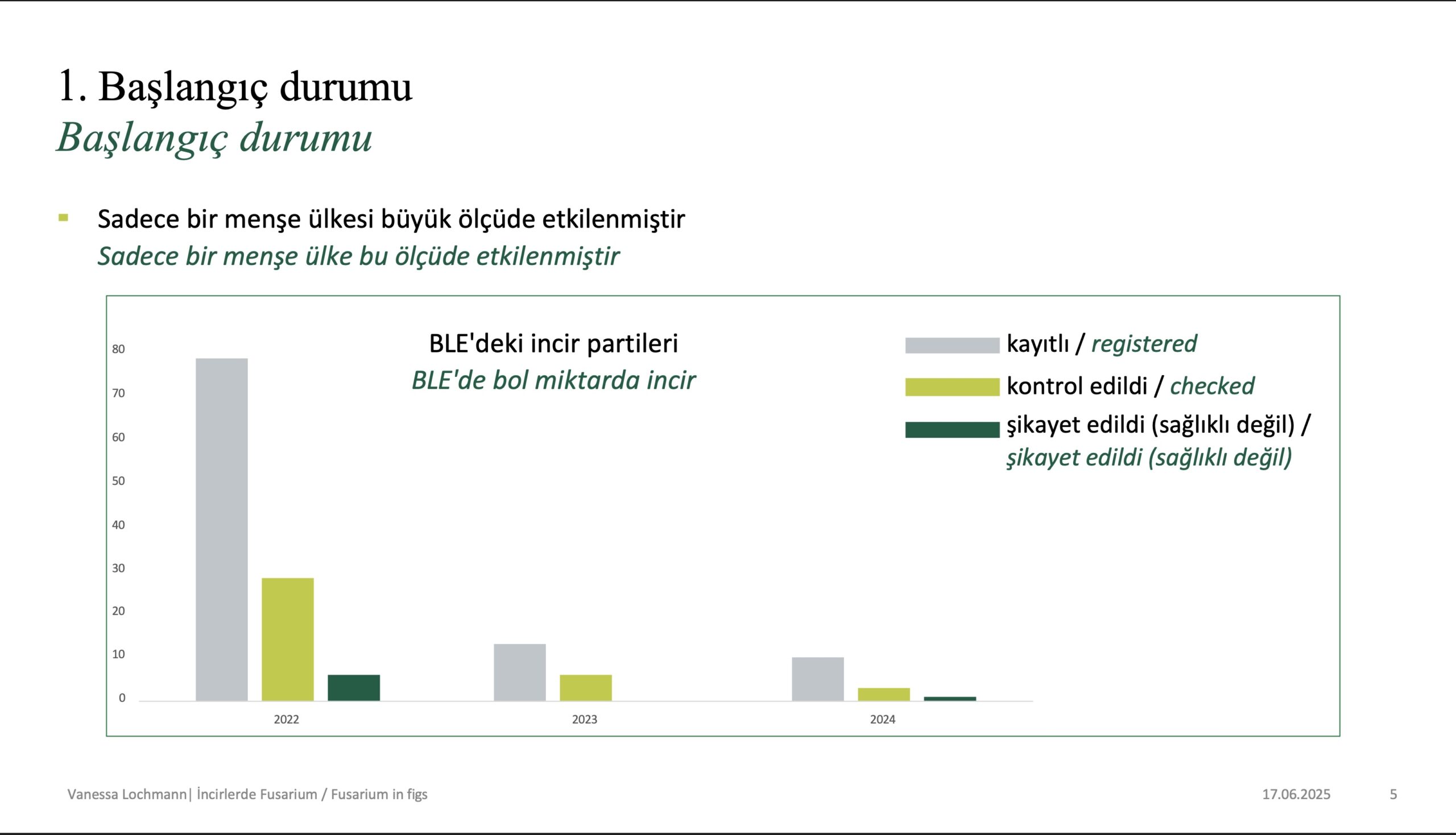 Bu sunumun etkisiyle Almanya gümrüklerinde siyah incir adeta “riskli ürün” kategorisine alınmış durumda. Ancak bilimsel literatürde, Fusarium’un toksik etkilerinin yalnızca bazı türlerde ve belirli koşullarda ortaya çıktığı; her görsel bozulmanın sağlık riski anlamına gelmediği açıkça belirtiliyor A.