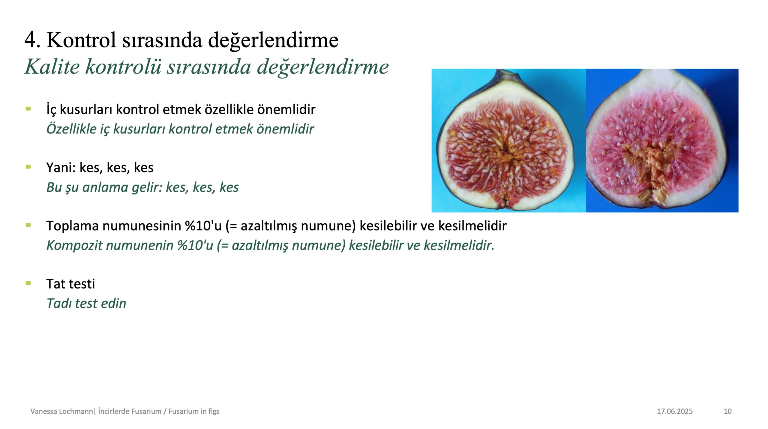 Son gelişmelere göre, Almanya Tarım ve Gıda Bakanlığı tarafından hazırlanan resimli ve Almanca sunum, siyah incir geldiğinde gümrük memurlarının nasıl hareket etmesi gerektiğini adım adım anlatıyor. Bu  Almanca sunumda özellikle A “keserek kontrol” talimatı veriliyor ve görsel bozulmalar doğrudan sağlık riskiyle ilişkilendiriliyor.