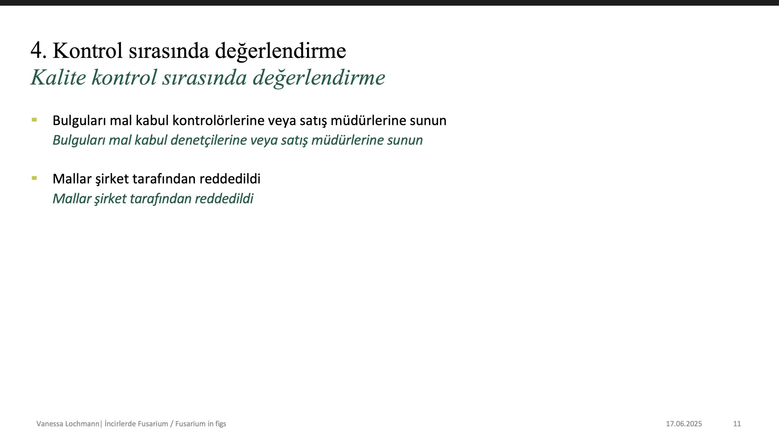 Almanya Tarım ve Gıda Bakanlığı’nın hazırladığı resimli sunum, gümrük memurlarına “keserek kontrol” talimatı verirken, görsel bozulmaları doğrudan sağlık riskiyle ilişkilendirmektedir. Ancak bilimsel literatürde, Fusarium’un toksik etkilerinin yalnızca bazı türlerde ve belirli koşullarda ortaya çıktığı, her görsel bozulmanın toksin içerdiği anlamına gelmediği açıkça belirtilmektedir.