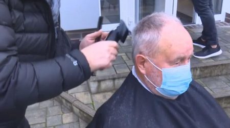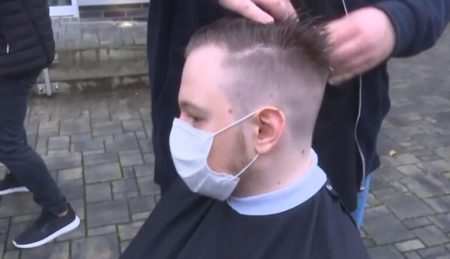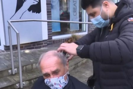 Almanya’nın Aşağı Saksonya eyaletine bağlı Delmenhorst kentinde koronavirüs nedeniyle berberlerin kapatılmasının ardından kuaför işletmecileri tıraş olmak isteyen vatandaşlara açık havada hizmet vermeye başladı.