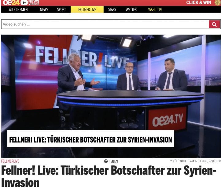 İlk defa bir Türk Büyükelcisi son Suriye İşgali ile canlı yayında diye tanıtım yapan ünlü Avusturyalı gazeteci Wolfgan Fellner tarafından tanıtılan Büyükelçi Yardım ilk cevabında şu noktaların altını çizdi: