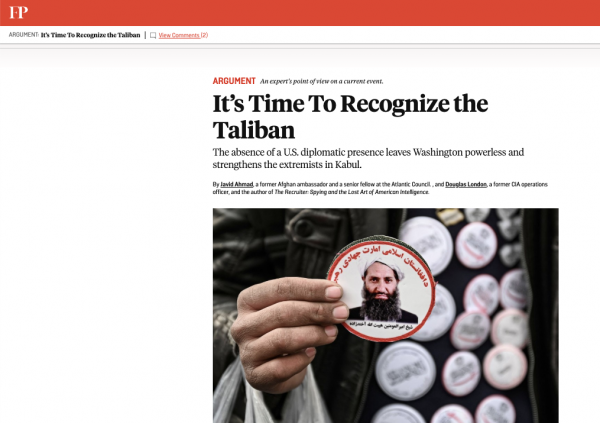 Afganistan’ın eski ABD Büyükelçisi Cavit Ahmet ve eski CIA Orta Doğu Anti-Terörizm İstasyon Şefi Douglas London imzasını taşıyan 24 Mayıs tarihli Foreign Policy makalesinde, ABD’nin artık Taliban’ı tanıması gerektiği ifade edildi.