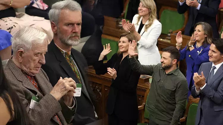 Kanada Parlamentosu’nda geçtiğimiz cuma Yaroslav Hunka adında 98 yaşındaki Ukraynalı-Kanadalı eski bir asker, Parlamento Başkanı Anthony Rota’nın çağrısıyla, Başbakan Justin Trudeau, Ukrayna Devlet Başkanı Volodimir Zelenskiy ve tüm meclis üyeleri tarafından ayakta alkışlanmıştı. Olayın hemen ardından Hunka’nın 2. Dünya Savaşı’nda Sovyetler Birliği’ne karşı Ukrayna’da savaşmış ve birçok kitlesel katliamlarda yer almış Waffen SS’in 14. Galizien Tümeni’ne bağlı bir Nazi askeri olduğu ortaya çıkmıştı. Skandalın ortaya çıkmasının ardından Yahudi örgütleri başta olmak üzere birçok kurum ve kişi, yaşananlara sert tepki gösterdi.