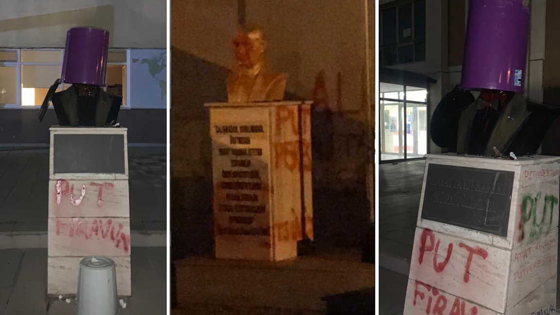 ANKARA. Tekirdağ’ın Marmara Ereğlisi ilçesinde 3 okulda bulunan bir Atatürk heykeli ile 2 büstüne boyayla hakaret içerikli yazılar yazan şüphelinin yakalanması için polis ve jandarma tarafından özel ekip oluşturuldu. İki yıl önce meydana gelen 5.8 büyüklüğündeki depremde Yeniçiftlik Mahallesi’nde bulunan Nizamettin Demirdöven İlkokulu’nun kirişlerinde ağır hasar meydana geldiği için boşaltıldı. Kullanılmadığı öğrenilen Nizamettin Demirdöven İlkokulu ile aynı mahallede bulunan Yeniçiftlik Belediye Ortaokulu ve ilçe merkezindeki Opet Anadolu Lisesi’nin bahçelerinde bulunan Atatürk heykeliyle büstlerine ve duvarlara kimliği belirsiz kişi ya da kişiler tarafından boyayla hakaret içerikli yazılar yazıldı.