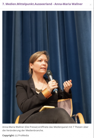 İşte bu toplantılardan bir tanesinde sıra medya temsilcilerine gelince, yine dikkatli bir şekilde dinlemeye başladım. Medya paneli başlıklı sahnede yer alan medya temsilcilerinin bu toplantıların sponsorları arasında, die Presse adına Sayın Anna Maria Wallner´in ayağa kalkarak herkesin sahnede oturduğu sırada ve seyircilerinin pür dikkat dinlediği konuşmasının başlığı şöyleydi:  “Medya branşı üzerinde değişimler ile ilgili 7 tez”( 7 Thesen über die Veränderung der Medienbranche)