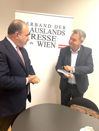 VİYANA.Avusturya Başbakan Yardımcısı ve Avusturya Yeşiller Federal Parti Lideri Werner Kogler, Avusturya’nın başkenti Viyana’da tüm önemli dünya haber ajansları, medya ve TV’lerinin üye olduğu 85 yaşına giren prestiji yüksek Foreign Press Association adlı „Viyana Yabancı Basın Birliği“ üyeleriyle cemiyetin merkezinde bir araya geldi.