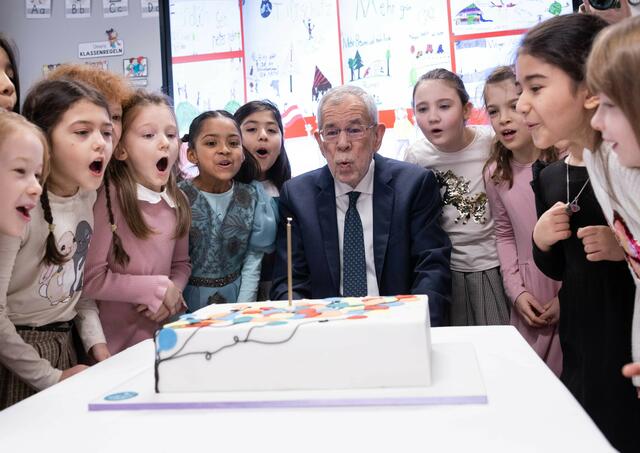 Cumhurbaşkanı Van der Bellen doğum gününü ilk olarak, Çarşamba günü Viyana’daki Liselotte Hansen-Schmidt eğitim kampüsünde ikinci sınıf öğrencileriyle birlikte kutladı. Sınıf, Federal Cumhurbaşkanlığı makamı hakkında bir proje üzerinde çalıştı. Cumhurbaşkanı Van der Bellen daha sonra öğrencilere bir pasta ile sürpriz yaptı.