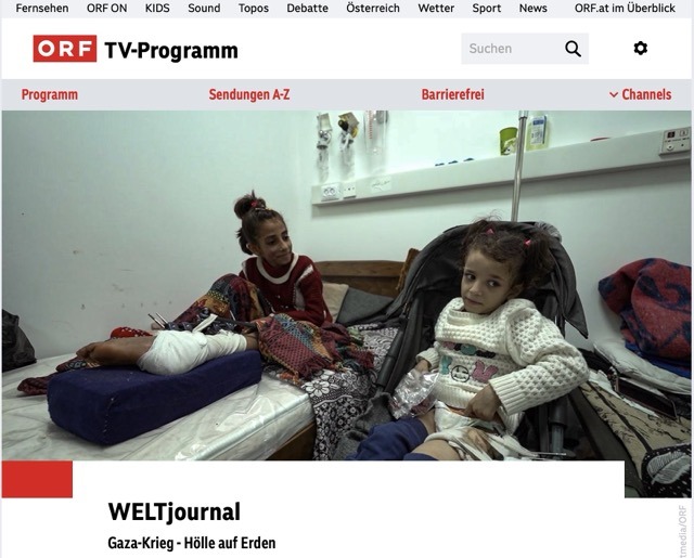 ORF taraflı habercilik suçlamasını reddetmektedir. Weltjournal ‚da yayınlanan “Gazze Savaşı – Yeryüzündeki Cehennem” başlıklı haber, 7 Ekim’de İsrail’de Hamas’ın gerçekleştirdiği kanlı katliamın ardından başlayan ve bugün de devam eden İsrail’in Gazze’ye yönelik yoğun askeri saldırıları karşısında Filistinli sivil halkın çektiği acıları gözler önüne seriyor. Gazze’den Filistinli muhabirler, doktorlar ve çocuklar savaşı nasıl yaşadıklarını anlattı. Weltjournal, savaşın patlak vermesinden bu yana hem İsrail hem de Filistin tarafındaki etkileri defalarca gösterdi.