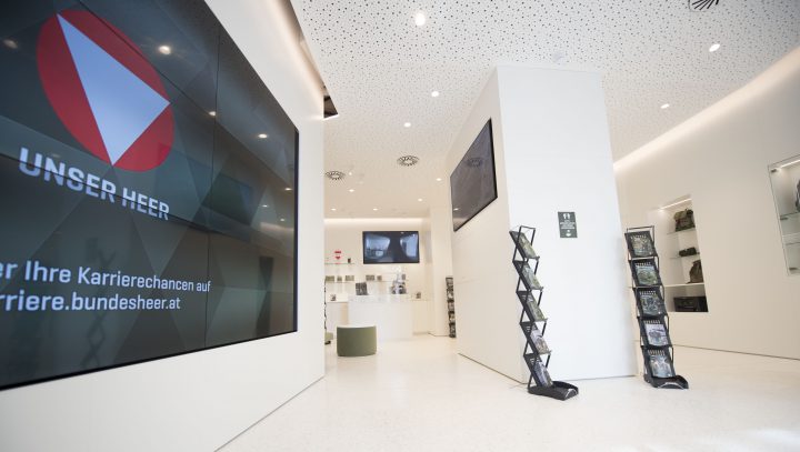 Savunma Bakanı Klaudia Tanner tarafından dün resmi olarak açılan mağaza ve kariyer ofisinin, askerliğe ilgi duyanlara, ordudaki çeşitli profesyonel fırsatlar ve işler hakkında bilgi ve ordu tasarımında yüksek kaliteli ürünler satın alma şansı sağlayacağı açıklandı.