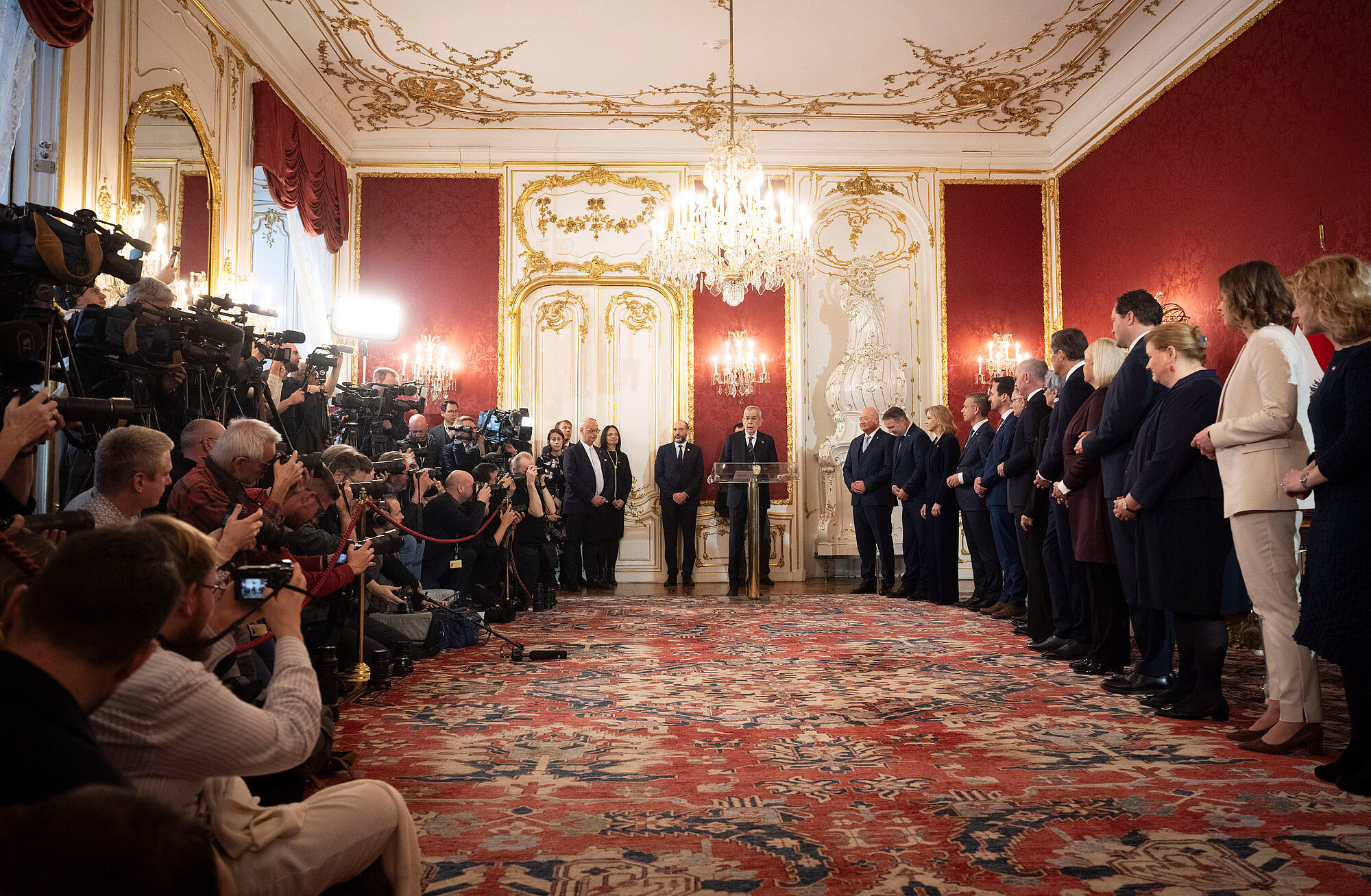 Avusturya Federal Cumhurbaşkanı, 13 bakan ve yedi devlet bakanından oluşan oluşan yeni hükümetin yemin töreninde özellikle Avusturya tarihinde ilk olacak olacak " ÖVP-SPÖ-NEOS üçlü koalisyon hükümet döneminin" bir bütün olarak önemini vurguladı.