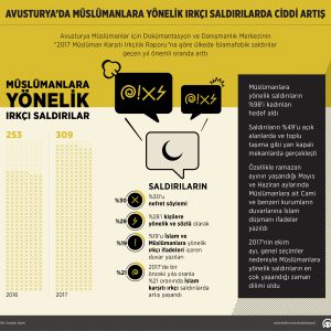 Rapora göre, 2016 yılında Müslümanlara yönelik 253 saldırı kayıt altına alınırken, bu sayı 2017’de 309’a yükseldi.
