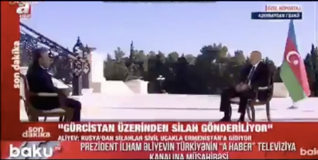 BAKÜ. Azerbaycan Cumhurbaşkanı İlham Aliyev hükümete yakınlığıyla bilinen A Haber’de, Ermenistan ile devam eden Dağlık Karabağ krizine ilişkin konuştu. Aliyev’in, A Haber’de Kerim Ulak’ın sorduğu “İran” sorusuna verdiği yanıt ise dikkat çekti. Aliyev’i konuk eden A Haber’den Kerim Ulak, “Ateşkesin uygulandığı tarihten itibaren Erivan’ın havalimanına Rusya’dan, İran’dan kargo uçaklarıyla sürekli füzeler gönderiliyor. Bu noktada ne söylemek istersiniz İran ve Rusya’ya” diye sordu.Aliyev ise verdiği yanıtta, İran’dan Ermenistan’a giden silahlarla ilgili bir istihbaratlarının olmadığını söyledi. İran’ın hava sahasını Ermenistan’a silahların taşınmaması için kapattığını belirten Aliyev, İran’a teşekkür etti.