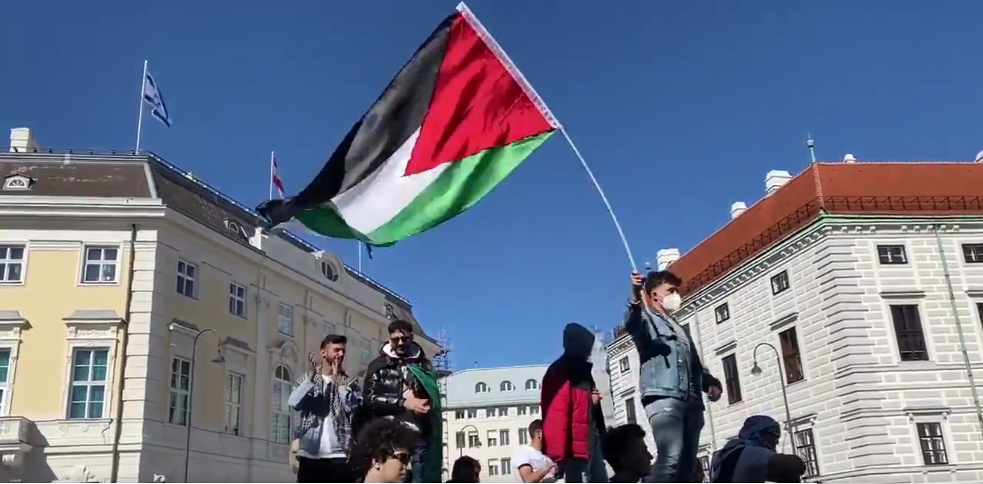 VİYANA- Federal başkent günlerdir İsrail karşıtı gösterilere sahne oluyor. Cumartesi günü polis iki adet Anti-İsrail ve Filistin yanlısı gösteriyi yasaklamasına rağmen, bugün (Pazar) Filistin bayraklı yaklaşık 100 kişilik bir grup, cuma gününden beri İsrail bayrağının dalgalandığı Başbakanlık binası önünde toplandı.