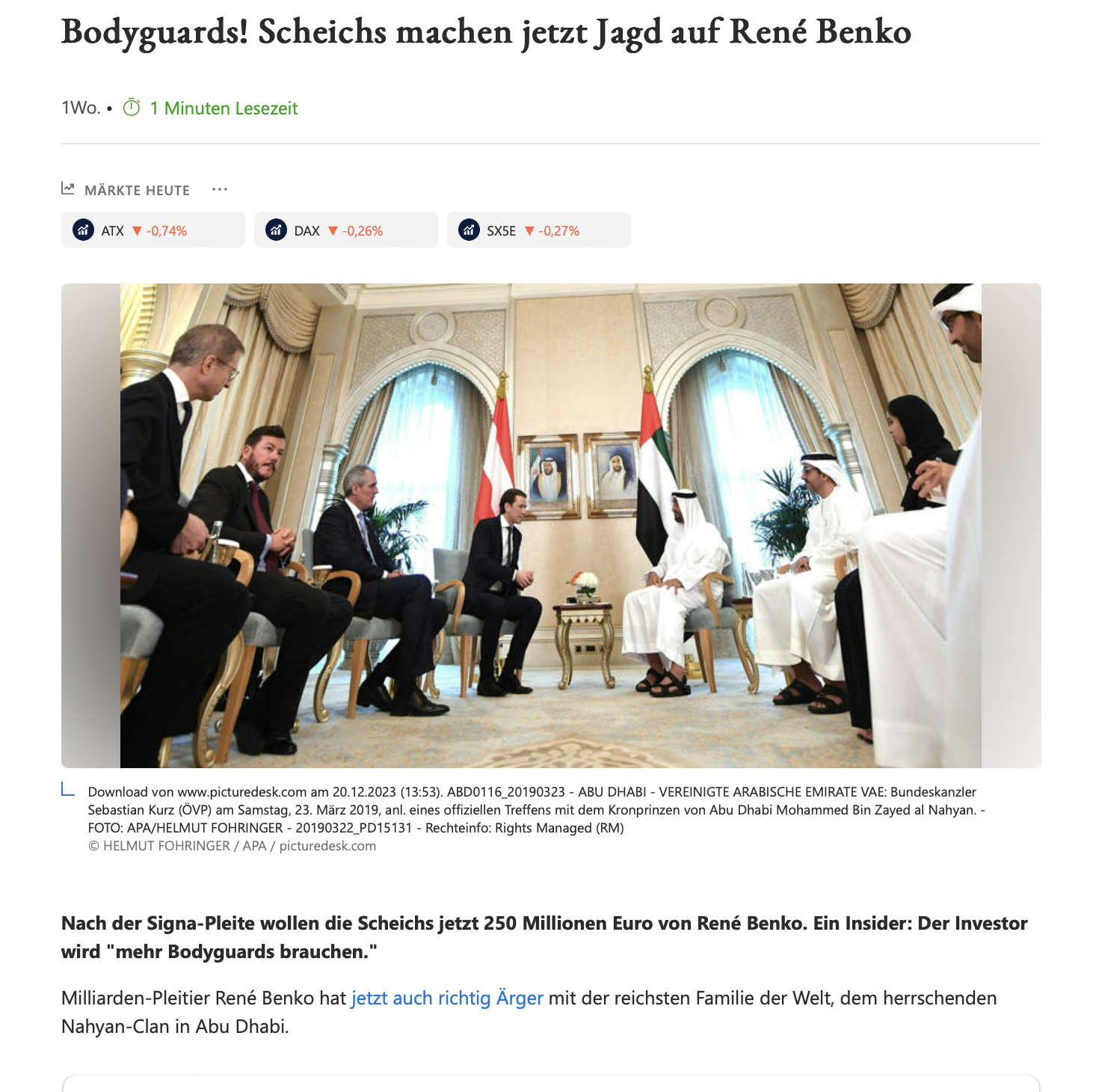 Avusturya´da BAE ile ilgili haberler böyle verildi: „Korumalar! Şeyhler şimdi René Benko’nun peşinde“