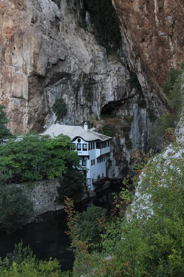 Demir kapının üstündeki bir levhada ise şunlar göze çarpıyor: “İslamska ZaJednica U Bosnı I Hercegovını – Medzlis İslamske Zajednice Mostar, Nacıonalnı Spomenık / Natıonal Monument – Tekıja Blagaj – XV. St. / 15 Th. Century – Tekke – Dervish House. Aynı levhada tek Türkçe ibare ise Giriş Ücretlidir: 2 € yazısı vardır.