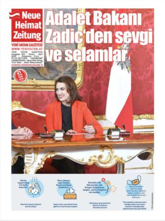 Son Yugoslavya iç savaşında ailesi ile Bosna-Hersek’in Tuzla şehrinden acılı yolculuklar ile Avusturya’ya göç eden Boşnak asıllı Avusturya Adalet Bakanı Alma Zadic Türk Düşünce Kuruluşu TKG’nin  Başkanı Birol Kılıç ve Avusturya Kadın Koruma Evleri AÖF Başkanını Maria Rösslhumer’i  kabul ederek Avusturya’da Koronalı dönemde aile içi şiddete karşı iki STK’nın taleblerini uzmanları ile birlikte dinledi.   Zadic, talep edilen bahsedilen konuları ciddiyetle takip edeceğini ve kadınlara uygulanan şiddete kesinlikle karşı olduğunu ve aile içi şiddet konusunda tüm vatandaşları hassas olmaları konusunda uyardı. Tüm vatandaşları kadınlara, çocuklara ve aile içi şiddete karşı demokratik mücadeleye davet ediyorum diye davet etti. Boşnak asıllı Dr. Alma Sadic Avusturya’da yaşayan Türk toplumuna sevgi ve saygılarını sunarak Avusturya’da kanunlara uyma konusunda tüm vatandaşları ama özellikle benimde dahil olduğum göçmenlerin hepsini daha özenli olma konusunda çok daha fazla dikkat ederek örnek vatandaş olma konusunda ricada bulundu. (yenivatan.at)
