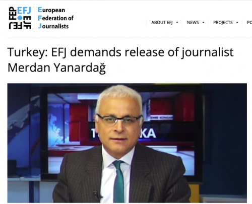 Avrupa Gazeteciler Federasyonu (EFJ) Başkanı Maja Sever, „Türkiye’de AKP´li milletvekilinin Öcalan’a yönelik fikirlerine karşı yorum yaparak sadece işini yapan gazeteci Merdan Yanardağ’ın derhal serbest bırakılmasını talep ediyoruz. Meslektaşımız Yanardağ bu konuda AKP hükümetinin Öcalan hakkında samimiyetine ilişkin şüphelerini dile getirmekte kesinlikle haklıydı. Biz de onun duygularını tamamen paylaşıyoruz. Kendisinin hapsedilmesi tamamen orantısız bir baskı ve yıldırma eylemidir. Bu sadece basın özgürlüğünün ihlali değil, aynı zamanda ifade özgürlüğüne ve Türk vatandaşlarının haber alma hakkına yönelik ciddi bir saldırıdır.“