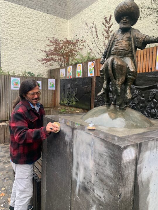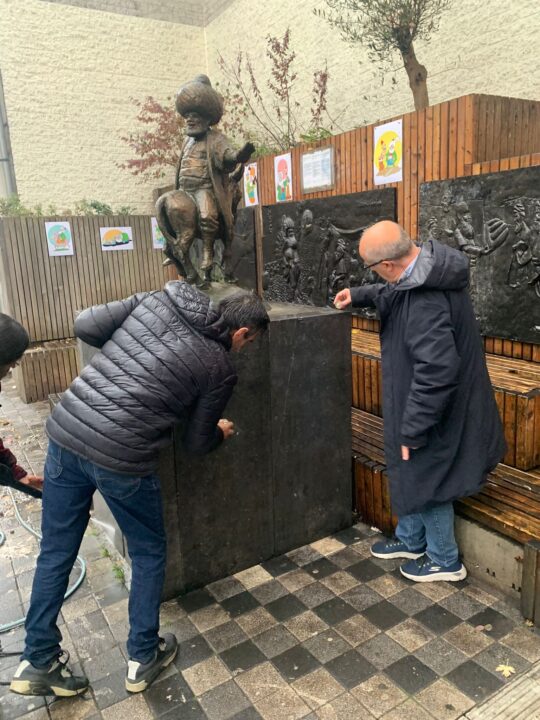 Brüksel- 3 Ekim Dünya Gülmece Günü’nde Brüksel’deki Nasrettin Hoca heykeli, Belçikalı Türkler tarafından temizlendi. Mizah yazarı Erdinç Utku’nun çağrısıyla düzenlenen etkinlikte, Binfikir Çocuk Tiyatrosu’nun minik oyuncuları heykelin kaidesini ve çevresini temizledi. Yağmura rağmen gerçekleşen buluşma, çocukların yaptığı resimlerin heykelin arkasına asılmasıyla renkli bir atmosfer kazandı.