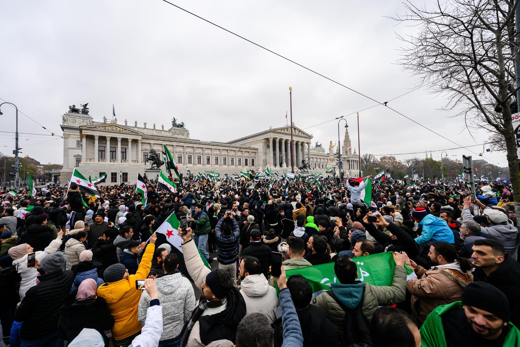 VİYANA. Polis kayıtlarına çoğu sığınmacı ve mülteci olan Suriye vatandaşları Suriye’de Esad’ın Şam’da düşüşünü 30 bin kişiyle birinci Viyana ilçesini adeta felç ederek kutladı. Avusturya kanunları polise önceden kısa bir bildirimle özgürce miting yapma hakkı tanıyor. On binlerce Suriyeli ve sempatizanı Pazar günü öğleden sonra Viyana şehir merkezinde düzenledikleri bir gösteriyle Beşar Esad rejiminin düşüşünü kutladı. Göstericiler Devlet Operası önünde “Özgür Suriye” sloganıyla Suriye bayrakları salladı. Polise göre gösteri için 3,000 kişi kayıt yaptırdı. Bu sayının on kat artmış olması muhtemeldir.