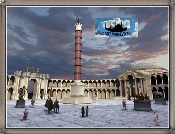 Konstantinopolis’in 11 Mayıs 330’daki açılışında Konstantin Forum’u; mermerden yapılmış senato binaları, elips şeklinde dizilmiş büyük ve parlak sütunları, heykelleri ve tam ortasındaki Zafer Takı ile muhtemelen gerçeküstü görünüyordu. Mese caddesi üzerinde bulunan Konstantin heykelinin kaidesinde ise şu yazıyordu: “Ey dünyanın efendisi ve yöneticisi olan Yüce İsa, bu itaatkar şehri, bu asayı ve Roma’nın bütün gücünü sana adıyorum. Roma’yı koru, bütün kötülükleri bizden uzak tut.”