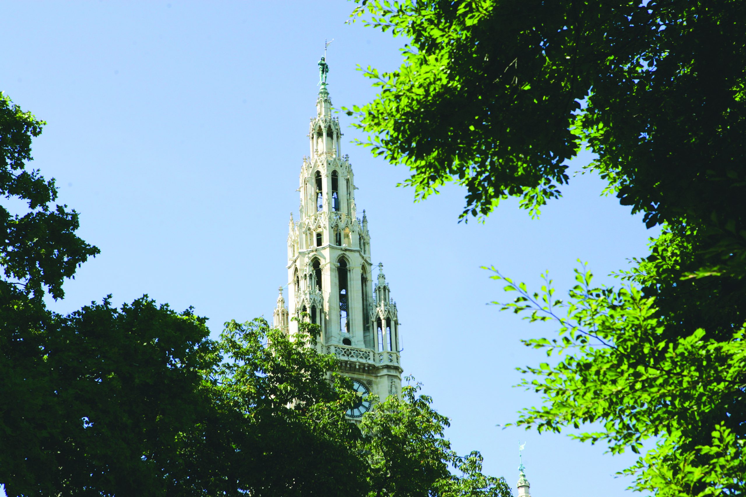 Das Wiener Rathaus am Friedrich-Schmidt-Platz im ersten Wiener Gemeindebezirk wurde nach zahl-reichen Entwürfen des gleichnamigen Architekten in den Jahren 1872 bis 1883 errichtet. Es beherbergt die Amtsräume des Wiener Bürgermeisters sowie des Gemeinderates und ist eines der zahlrei-chen historische Gebäude in Wien, die entlang der Wiener Ringstraße empor ragen. Die Türme sind von dem Stil der Gotik inspiriert, die Innenhöfe ähneln eher barocken Palästen Das Rathaus ist über 150 Meter lang und rund 125 Meter breit auf einer Gesamtfläche von 113. 000 m². Der große Festsaal im Inneren des Gebäudes dient -als größter Saal an der Ringstraße-gemeinsam mit zahlreichen angrenzenden Räumen als Schauplatz für Ausstellungen, Bälle, Konzerte und anderen Veranstaltungen aller Art. Wohl am bekanntesten im und um das Wiener Rathaus herum ist der jährliche Life Ball, Europas größte Aids- Benefiz- Veranstaltung.