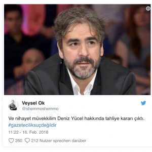 Yücels Anwalt schrieb bei Twitter: „Endlich hat das Gericht die Freilassung meines Mandanten beschlossen.“