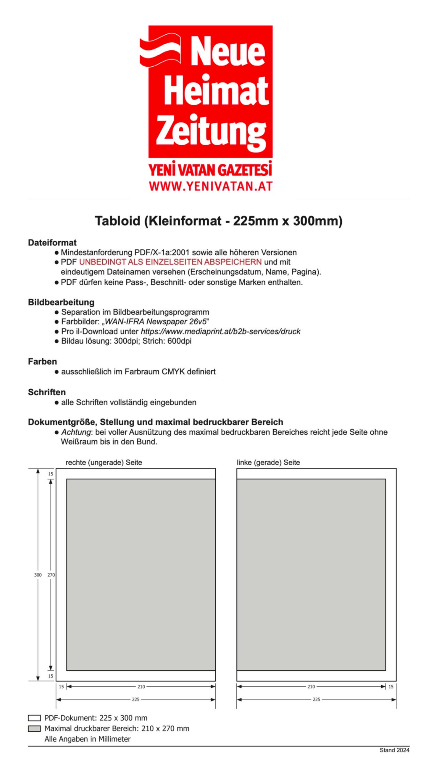 Berücksichtigung der Allgemeinen Richtlinien für den Zeitungsdruck der IG Austria Druckstandard.