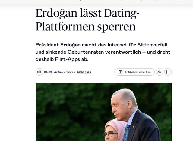 Türkiye Cumhurbaşkanı Recep Tayyip Erdoğan, interneti ahlaki çöküşün ve doğum oranlarındaki düşüşün başlıca nedeni olarak göstererek, çevrimiçi flört uygulamalarına karşı harekete geçti. Devletin internet denetim kurumu tarafından yapılan başvuru üzerine Ankara’daki mahkemeler, toplamda 29 flört ve arkadaşlık platformunun erişimini engelledi.