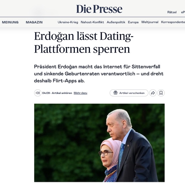 Türkiye Cumhurbaşkanı Recep Tayyip Erdoğan, interneti ahlaki çöküşün ve doğum oranlarındaki düşüşün başlıca nedeni olarak göstererek, çevrimiçi flört uygulamalarına karşı harekete geçti. Devletin internet denetim kurumu tarafından yapılan başvuru üzerine Ankara’daki mahkemeler, toplamda 29 flört ve arkadaşlık platformunun erişimini engelledi.