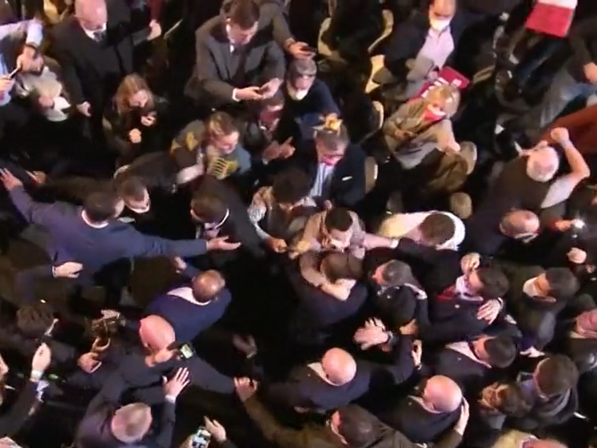 Zemmour konuşmasına başladıktan kısa bir süre sonra tişörtlerinde ‘Irkçılığa Hayır’ yazan aktivistlere sandalyeler fırlatıldı.