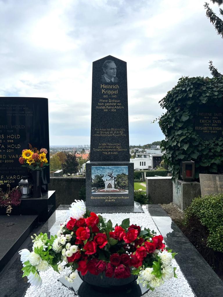 Nachdem Heinrich Krippels Grab 2015 verkauft wurde, weil es keine lebenden Verwandten mehr gibt, welche die Grabkosten, die jährlich anfallen übernehmen könnten, haben sich die türkische Kulturgemeinde in Österreich (TKG) und verschiedene UnternehmerInnen und VerlegerInnen Wiens dazu entschlossen, anlässlich des heurigen 100. Jubiläumsjahres Atatürks Bildhauers- welcher seine sieben glanzvollen Denkmäler zwischen den Jahren 1926-1937 in seiner Galerie in der Auhofstraße erschuf- dessen letzte Ruhestätte nochmals an der gleichen Stelle seines ehemaligen Grabes zu erbauen. Anlässlich der Fertigstellung des Grabes am 29.10.2023 wird es eine Feier mit christlichen und muslimischen Gebeten geben.