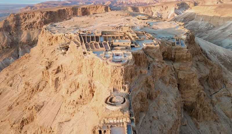 Ölü Deniz’den 400 metre yukarıda bulunan Masada, tarih öncesinde izole bir kaya platosunun üzerindeki eski bir surdan oluşuyordu. Roma İmpartoru tarafından atanan Yahudi Kralı Büyük Hirodes, M.Ö. 37 ile 31 yılları arasında devasa yapıyı inşa etti.