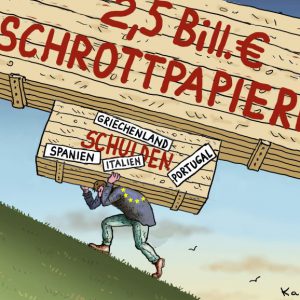 Şimdi bedeli ödeniyor. Kriz ülkelerinin rekabet gücü yetersizliğini finanse etmek ve eski kredilerin kapatılması için daima yeni krediler veriliyor. Yunanistan, İspanya, İtalya ve Portekiz sadece bu şekilde Euro bölgesinde tutulabilir ancak yapay olarak. Kayıplar giderek büyüyor. Avrupa Merkez Bankası, kriz ülkelerinden hurda kâğıt ve atıl krediler satın almak için hâlihazırda 2,5 milyar Euro’dan fazla harcama yaptı. Para politikasındaki bu çılgınlık, milli servetimizin borçlu devletlere, başarısız bankalara ve spekülatörlere yeniden bölüşümünden başka bir şey değil.