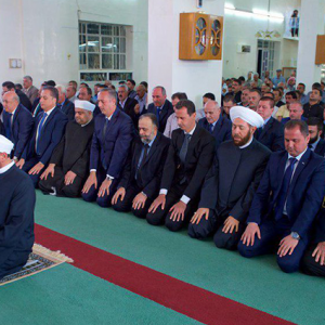 Televizyona göre, caminin imamı Şeyh Mamun el Kadiri bayram vaazında Esad’a teşekkür edip, „Halk ve ordudan destek alan sabrınız ve bilgeliğiniz sayesinde vatanı güvenliğe yaklaştırıyorsunuz“ ifadelerini kullandı.