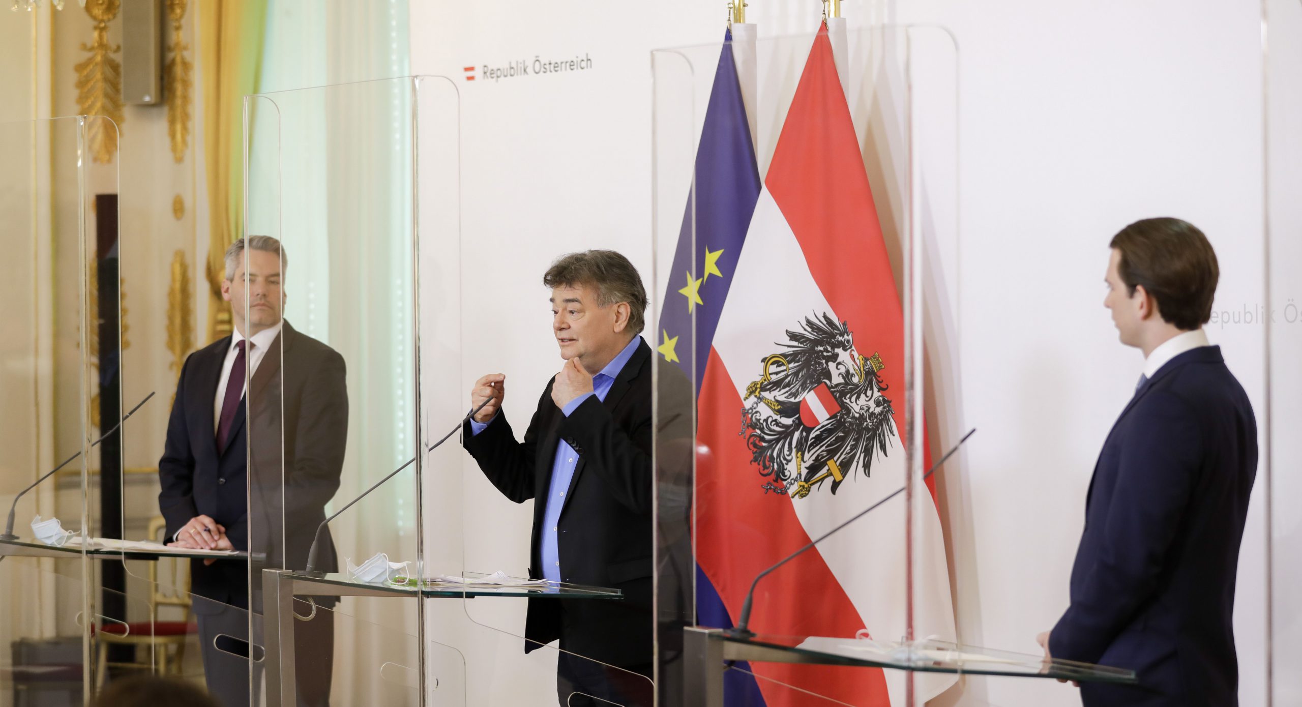 Avusturya Başbakanı Sebastian Kurz, Sağlık Bakanı Rudolf Anschober ve İçişleri Bakanı Karl Nehammer, Kovid-19 konulu ortak basın toplantısında açıklamalarda bulundu.