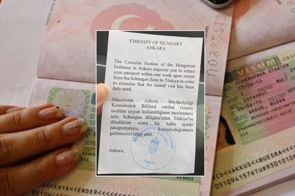 Uyarı notunda, “Macaristan Ankara Büyükelçiliği Konsolosluk Bölümü verilen vizenin usulüne uygun kullanıldığının incelenmesi için, Schengen Bölgesi’nden Türkiye’ye döndükten sonra bir hafta içinde pasaportunuzu konsolosluğumuza getirmenizi talep eder” ifadeleri yer aldı.