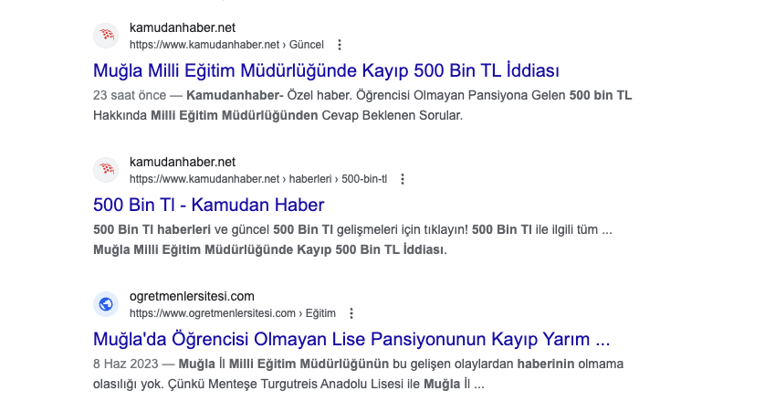 "Muğla Milli Eğitim Müdürlüğünde kayıp 500 Bin TL iddiası" haberi 23. Ağustos.2023'de (dün) Kamudanhaber.net'de yayınlandı ve daha sonra silindi. Kamudanhaber.net silinen nitelikli dolandırıcılık haberini Viyana'dan yayınlıyoruz!
