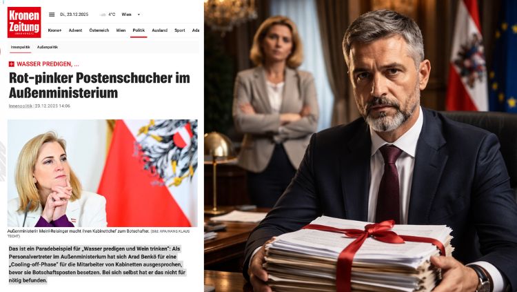 VİYANA, 23.12.2025-Kronen Gazetesi, 23 Aralık 2024 tarihinde internet sitesinde yayımladığı “NEOS: Dışişleri Bakanlığı’nda kadro rantı ve torpil iddiaları” başlıklı haberiyle, NEOS Partisi lideri ve Avusturya Dışişleri Bakanı Beate Meinl-Reisinger’e yönelik sert eleştirilerde bulundu. Haberde ayrıca, hem İsrail hem de Avusturya vatandaşlığına sahip olan ve bakanlık kabinesinde görev yapan Arad Benkö de eleştirilerin merkezinde yer aldı.